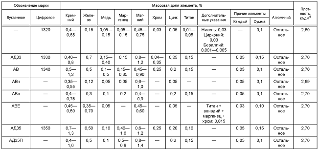 Алюминий марки АД33 — это металлический сплав, основой которого является алюминий (Al), содержание которого может варьироваться от 96% до 98,61%. Сплав АД33 неизбежно содержит магний, кремний, медь и хром. Допустимое количество примесей определяется таблицей химического состава.