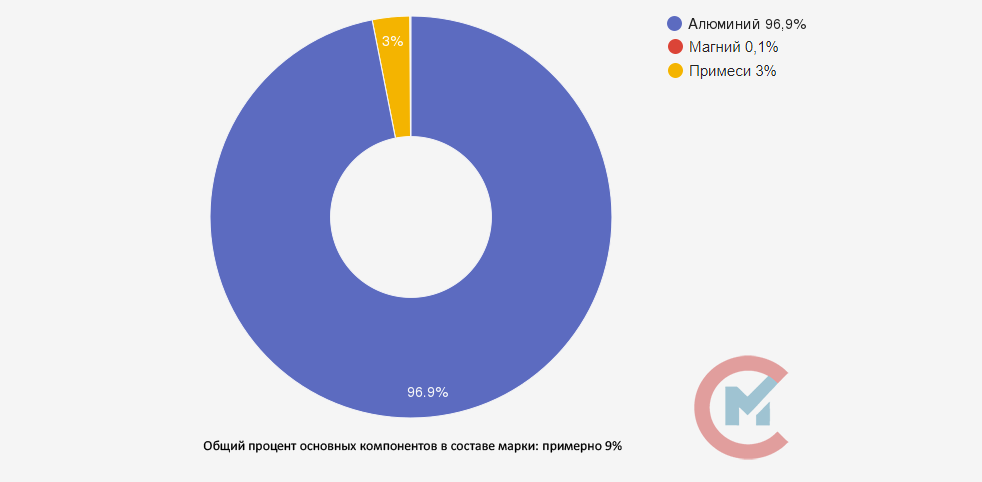 - Алюминий (Al) + Магний (Mg) 97%