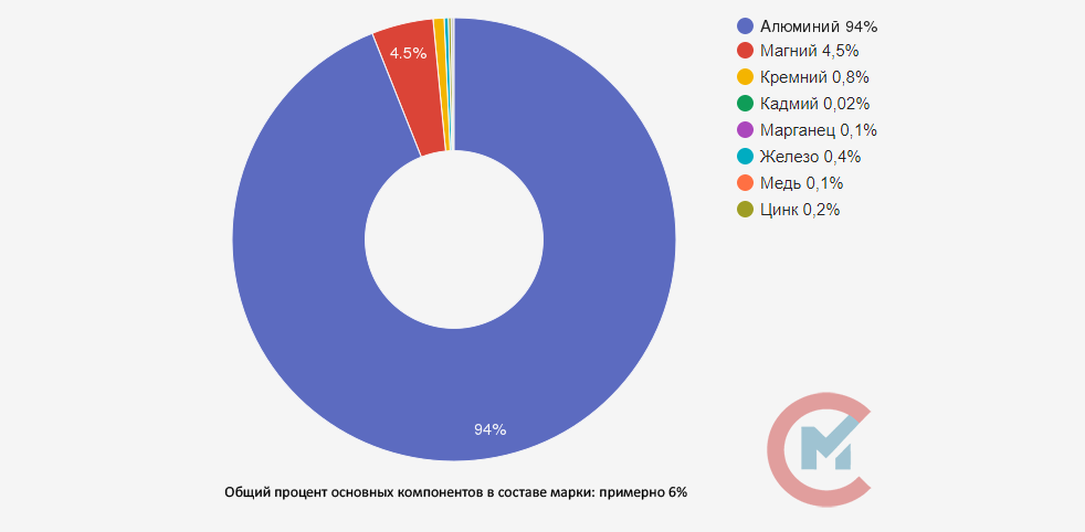 В соответствии с ГОСТ 1583-93 процентное содержание химических элементов в АЛ13: