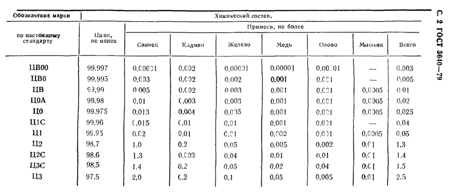 Цинк марки Ц1С – это сплав, в котором содержится цинк в количестве не менее 99,96%. Добавление различных примесей, таких как олово, свинец, кадмий должно соответствовать стандартам ГОСТ 3640-79 по технологической инструкции и масса сурьмы, этой марки, не должна превышать 0,02%. В новой версии ГОСТ 3640-94 данная марка отсутствует и не рекомендуется к применению.